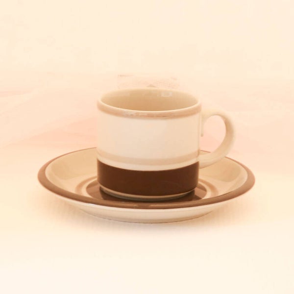 Kahvikuppi ja tassi, pienempi koko. Kuppi oli tuotannossa 1969-85.